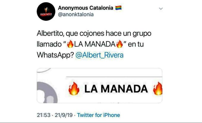 Al día siguiente una cuenta de Twitter denominada @anonktalonia, revelaba posibles grupos de whatsapp pertenecientes al líder del partido Ciudadanos. Aunque no se atribuía directamente la autoría, la revelación de esta información nos hace entrever que ellos podrían ser quienes estaban detrás del hackeo. Aunque todo esto les duró bien poco, ya que en la tarde del domingo 22 les fue cerrada la cuenta.
